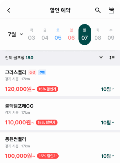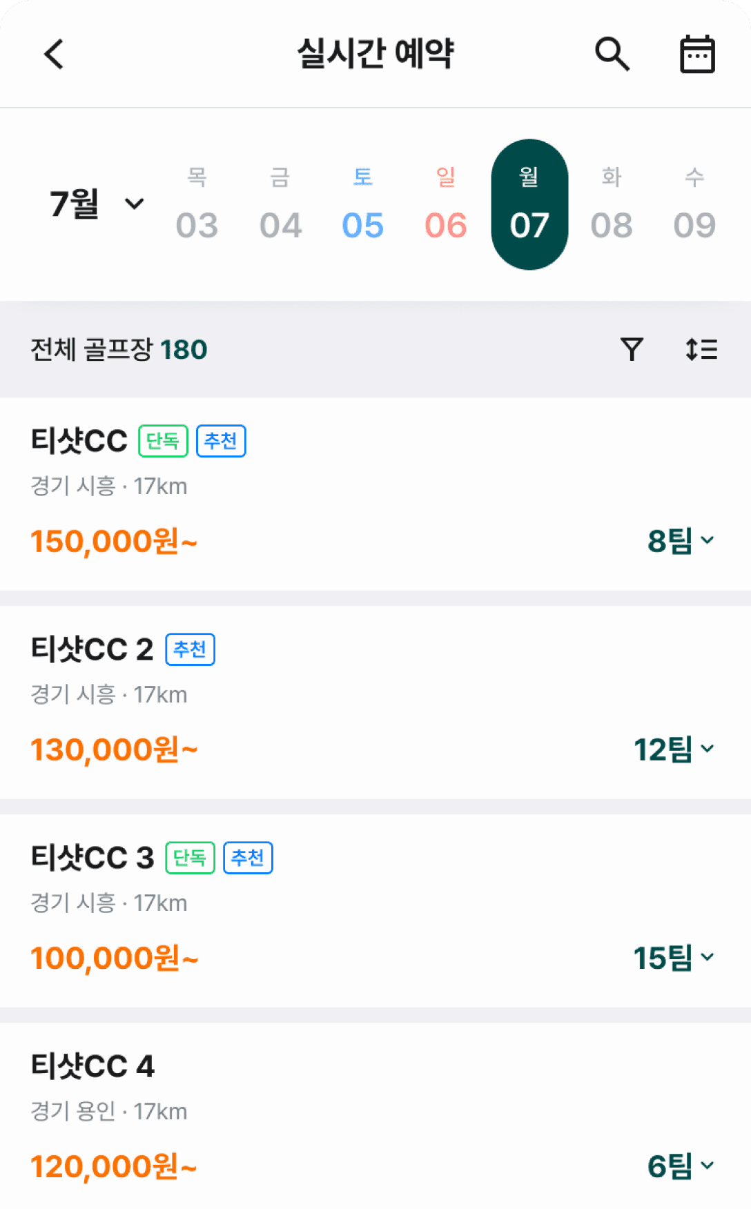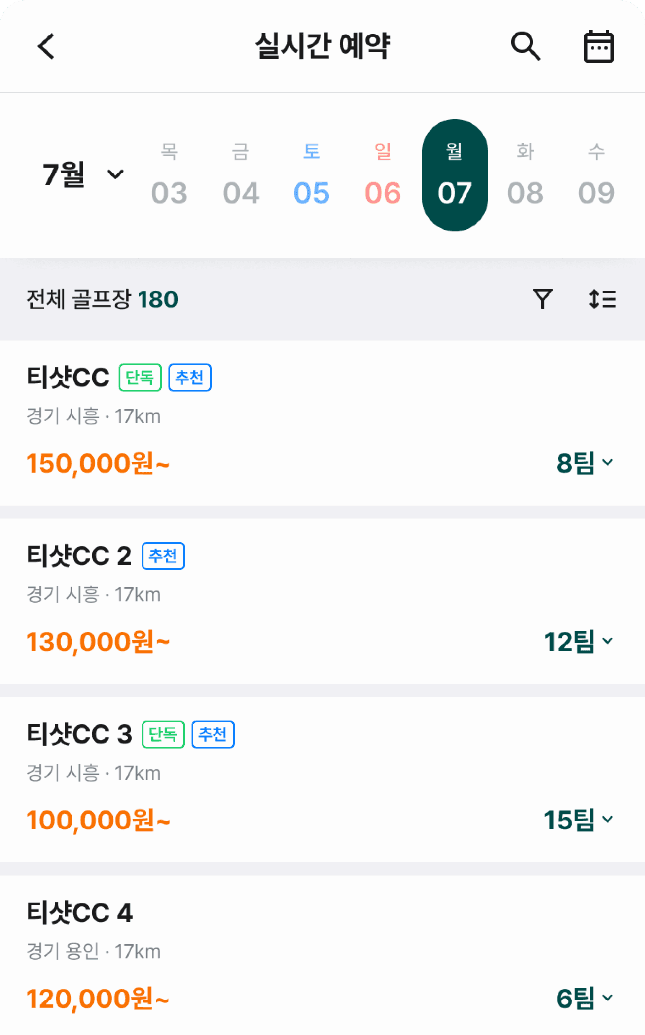 실시간 티타임 노출·예약 관리