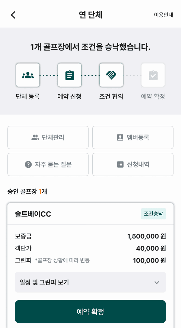 실시간 예약과 단체 예약을 운영하는 골프장