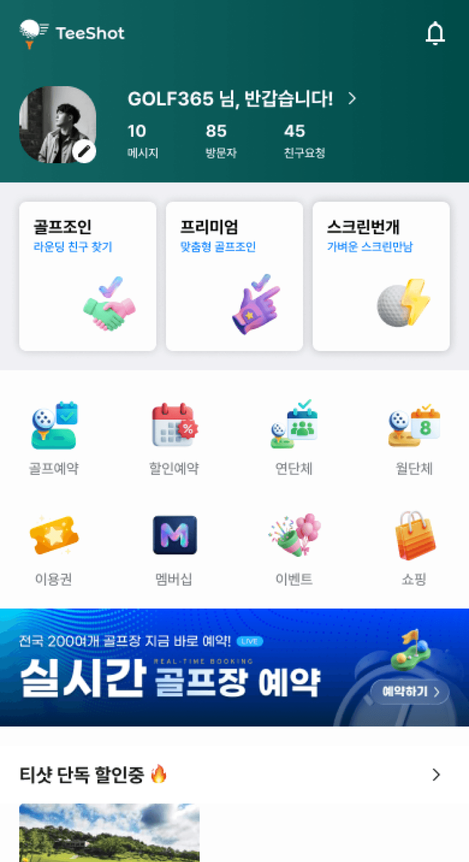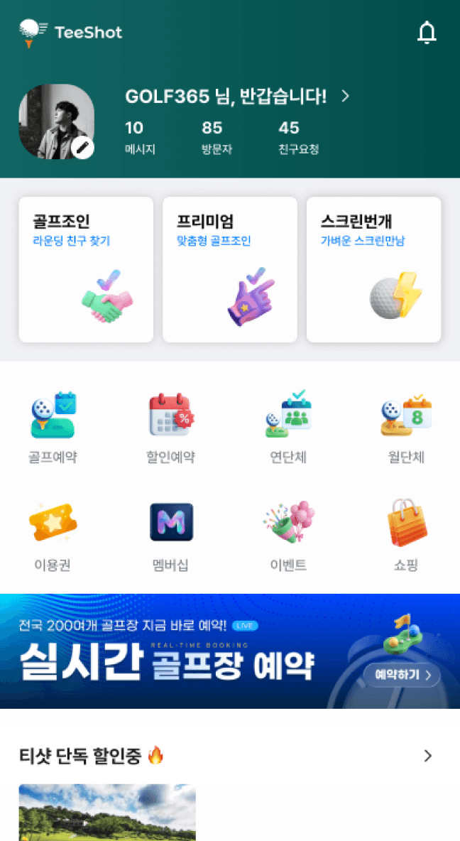 티샷 앱에서 우리 골프장 티타임 노출